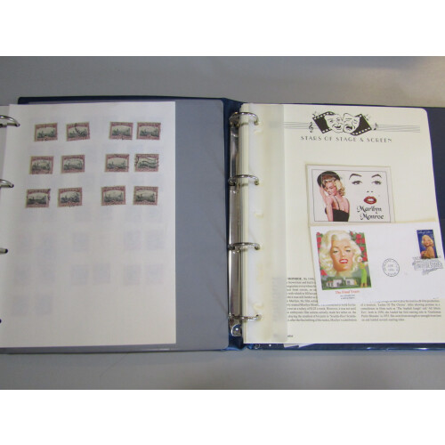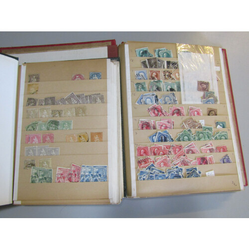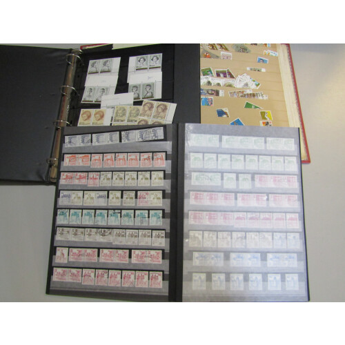 A worldwide accumulation in stockbooks and albums with a wide variety of different countries noted Germany, Belgium mint blocks, a few Marilyn Monroe covers, Switzerland duplicated from 1854 to modern, USA duplicated in well filled stockalbum, Bolivia colln in springback album, etc, 1000s in an archive box.
