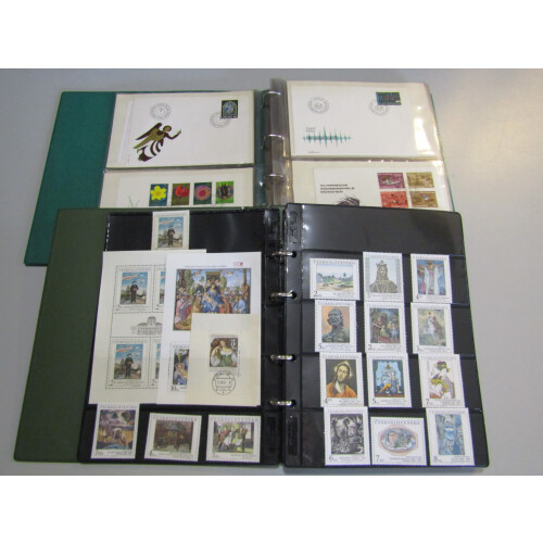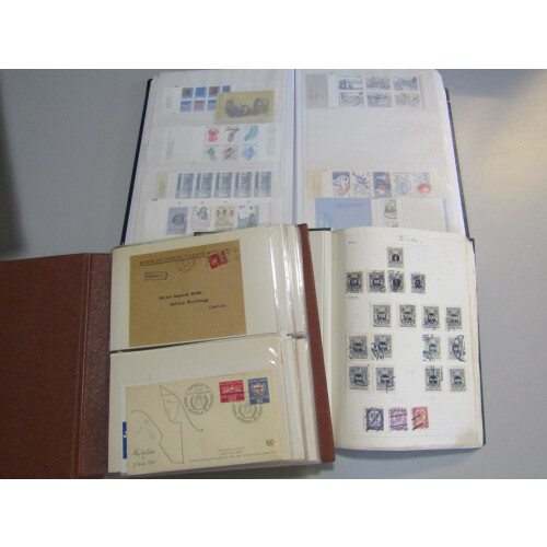 BOX of stockbooks and worldwide ranges mint & used with better including Austria colln in stockbook STC €2400 (approx 1950 stamps), U.N. FDCs, Sweden colln of booklets in large 64 sided stockbook, Europe modern u/m paintings thematics, Liechtenstein FDCs, American & British Zones Allied Occup. Commercial covers in binder, etc.