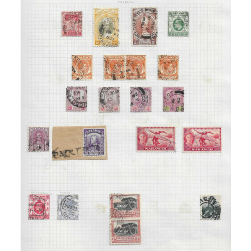British Commonwealth: Maritime cancels on stamps QV to QEII on leaves with more interesting noted incl S. Leone 2½d with Liverpool Packet CDS plus QV-EDVII with Paquebot CDS's, St Vincent with Southampton Ship Letter CDS (2), Dominica Posted on Board boxed h/s, Barbados with M/S Colombia, plus 6d Seahorse with Deutsches CDS, 1925 1d seahorse with New York Paquebot, Niger Coast QV 1d (2) with Paquebot CDS, Marseilles cancels on Seychelles, Tanganyika, Paquebot on Malayan states, Macau on HK 10c blue, Loose Ship Letter Papua, Packet on NZ, Hong Kong CDS on India on paper, Tenyo on HK, Tayo on HK, etc, intr lot. (126).