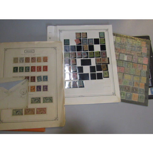 Old time accumulation on leaves and in folders for worldwide stamps and covers including French Colonies 19th century m & u, France 19th century plus covers, 1627 document, prestamp mail with Port Paye h/s in red or black, Australia, Austria 1973 long set to 50s U/M, Belgium, Montenegro, Argentina, Egypt etc, 100s etc.