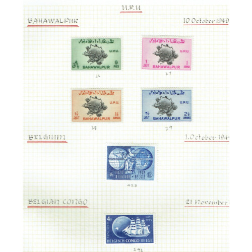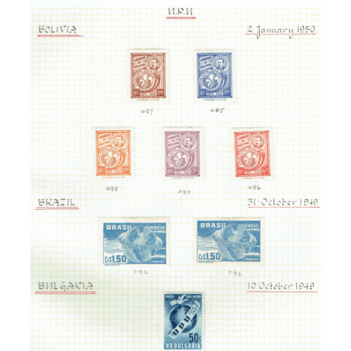 1949 Universal Postal Union mint collection of sets neatly arranged on Oriel pages alphabetically from Albania to Yemen for foreign countries, noted Germany, Italy, S. Korea, Lebanon, Luxembourg, Syria, etc, STC £350 in the 1980s.