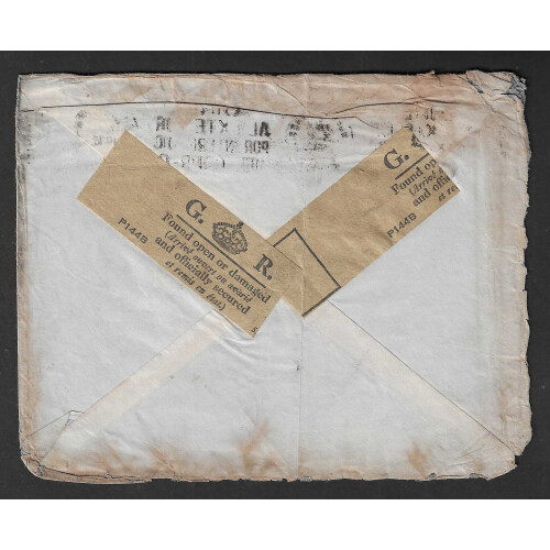 1940s Damaged cover from Argentina to Sheffield with stamp floated off showing DAMAGED BY / SEA WATER two line h/s in violet on obverse, plus sealing labels on reverse on arrival in UK. Unknown origin.