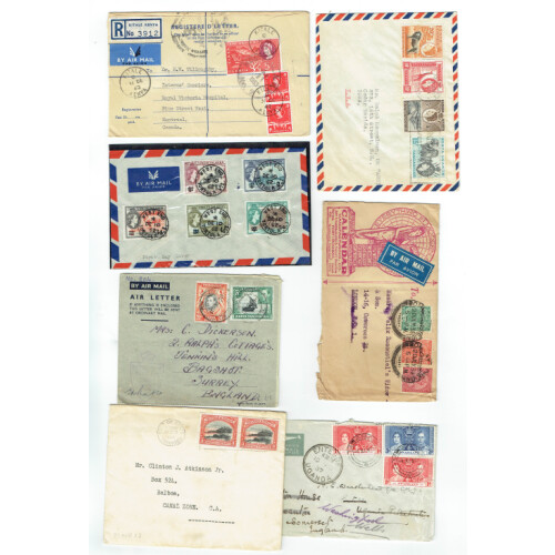 British Commonwealth group interesting covers QV-QEII incl 1898 S. Australia to USA, 1854 Front Montreal PAID incl; 8d & 10d charge h/s in red, 1967 outgoing Tonga tin can mail, Jamaica 1913 1d strip of 6, and pair to UK from Kingston, India 1933 Calendar Manufacturing advertising envelope airmail to London, Hyderabad 1891 P/S env cancelled crescent postmarks, KUT GVI censored & 1945 Duke St Nairobi with Germ Oils advert poster label on reverse, 1962 Br. Virgin Is. 5 surchs on FDI unaddr, Swaziland GVI redirected, Trinidad & Tobago 1938 with typed letter to Canal Zone about Orchids, Zanzibar 1957 PPC to USA, Cyprus 1916 WWII Censor (tatty) cover from Polymedia sent OAS to Newfoundland, Fiji ½d strip of 3 to Canal Zone with South Sea Islands Correspondence Club Natuvu oval h/s in violet. Mixed but intr group (19).