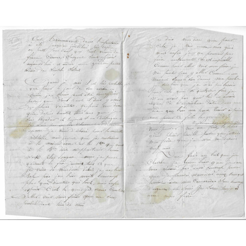 CRIMEA WAR: 1855 August. Four page letter from a French soldier (to his mother and brother)camped at Devant, Sebastopol. Mentions army life and is easily readable (in French) with some peripheral wear and filing creases. Nice Military item.