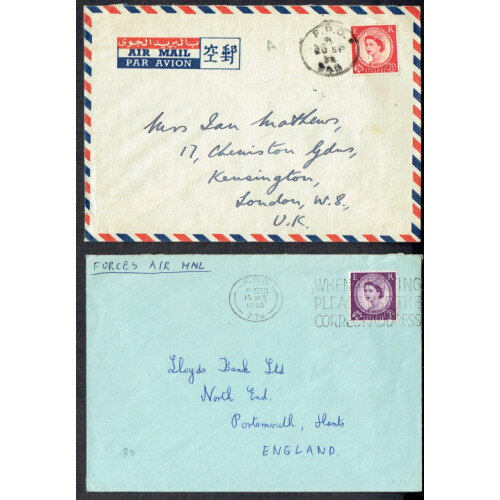 Field Post Office 948 1956 correspondence from Capt. Mathers CCK INF LAD / BAPO 3, in Hong Kong on printed airmail envelopes to London bearing GB 2½d red, nice original lot. (39).