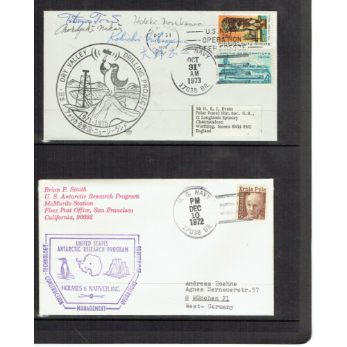 MARITIME: An extensive lifetimes collection of worldwide Antarctic, Arctic and polar covers in eleven binders and stockbooks with just over 1400 different covers and cards from middle to modern periods, a huge amount of material some nicely written up on pages in Dutch, also includes some thematic stamp ranges, miniature sheets and more. Noted dozens of operations and expeditions, Italy 1942 marine censor, 1908-32 per Islands Falk, French. Southern & Antarctic Terr. 1965 Adelie Expedition Thala Dan cover incl SG 35 5f (Cat £90), 1960s Aluminaut submarine covers, Russian Expeditions incl signed, Japan Expeditions, 1900 Marine Schiffpost, 1931 SS PLANCIUS Neth. Indies, 1973 Nemo USA Naval Underseas Center group, 1960s-70s Rovers' undersea expeditions, 1905-1925 Danish Biological stations, USS Thresher Nuclear submarine one 1967 cover with Lost at Sea overprint & a cacheted covers, Monaco ranges stamps and covers, dozens of 1960s-1980s in smaller cover albums, an enormous collection of 1400 mainly all different. Incredibly low starting price only £1.45 per cover. Three heavy boxes.