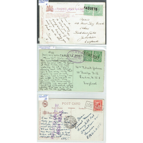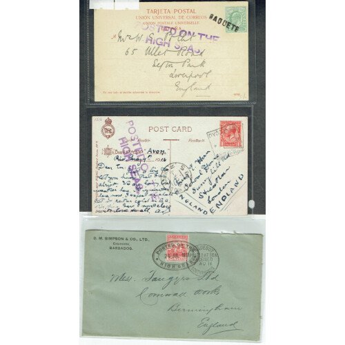 Maritime: POSTED ON THE HIGH SEAS Balance of a collection from different destinations and offices, several types incl two line, oval d/r violet h/s's incl Ships Atrato, Barbados, Lisbon, Rio De Janeiro boxed, VIGO, Pernambuco, SS La Coruna, etc, intr group (11).