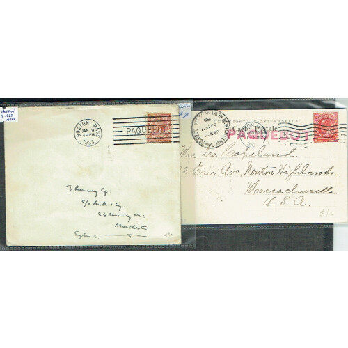 Maritime: USA Paquebot 1906-1939 group of postcards and covers mainly from Boston (9), & Hoboken each with PAQUEBOT h/s's, machine mark, SS Veendam etc (10).