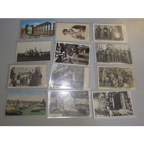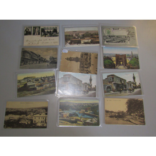 Syria: Nice collection of unused and few used incl divided backs with wide range of different views and scenes from Aleppo or Damascus, 1900 used with Russia defin 2k green tied to obverse Lycee Imperial, Balbek, 1905 used to Germany, street scenes, Damascus Palace Hotel, 1932 used on obverse to Italy, Mosque, La Gaserne, La Mairie, Maya Hotel, a few Lebanon etc, lovely lot (44).