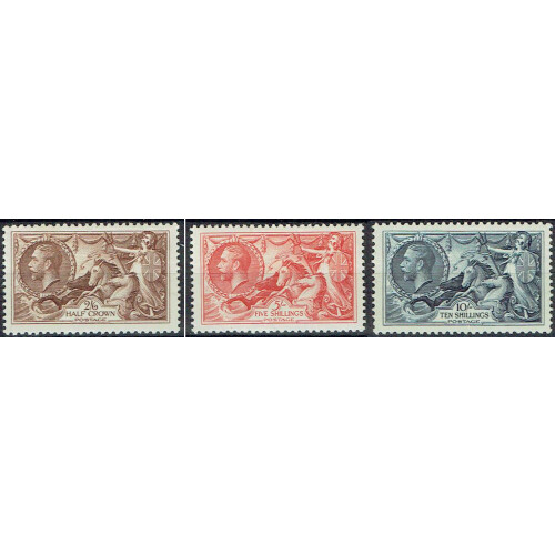 1934 Seahorses Re-engraved set of 3 to 10s hinged mint, all fine and fresh, SG 450/2. Cat £575.
