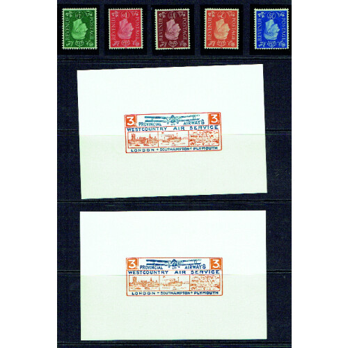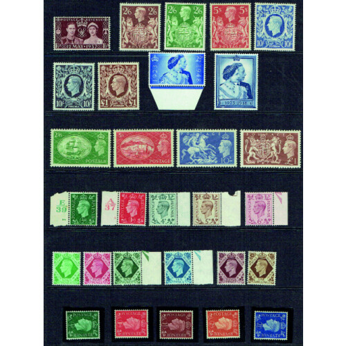 1937-1937 Mint and few unmounted mint on double sided stockpage incl 1939-48 set of 6 to £1 appears U/M, 1948 RSW set U/M, 1951 set 4 U/M, 1937 set, watermark varieties incl sideways and inverted to 2½d, also two West Country Air Service bicolour proofs (2), nice selection. (34 + 2 proofs).