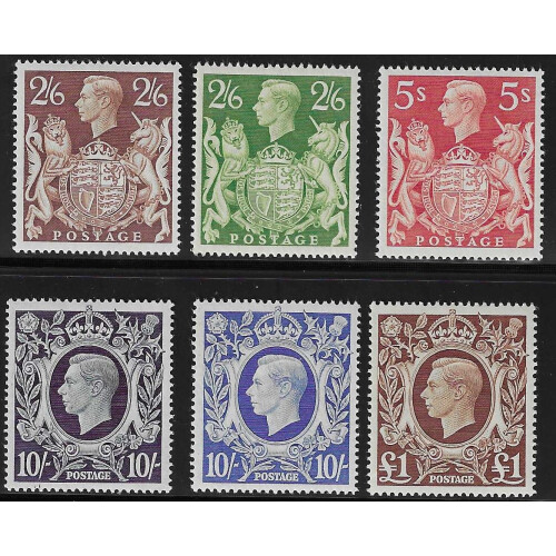 1939-48 Set of six high values mounted mint with hinge remains, nice looking set, SG 476/478c Cat £425.