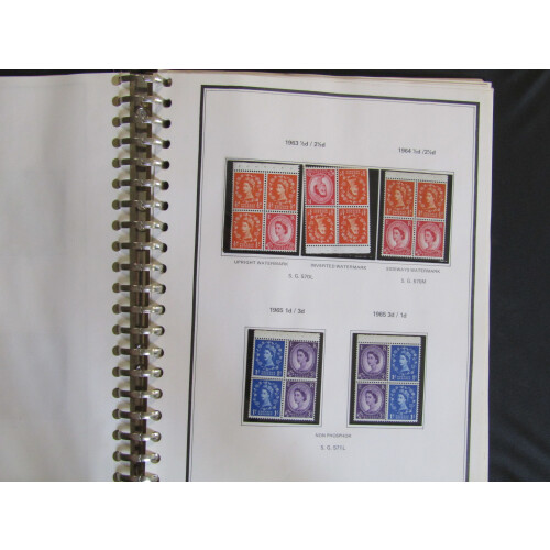 Booklet Panes: Unmounted mint collection in special binder from 1952 & 1955 wmks 1d blue strip of 3 and three printed labels both upright and inverted watermarks, 1965 panes, 1968 phos. panes (both types), 1967 Sterling heads combinations, 1973 3½p pane of 5 plus label miscut at top (SG UB45a), 10p pane with 6p on right variety miscut, etc, useful collection.