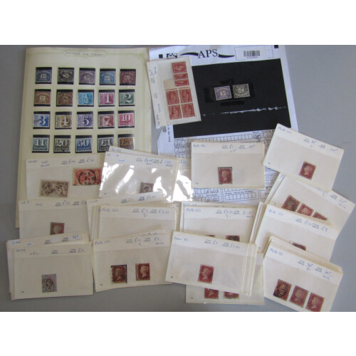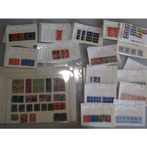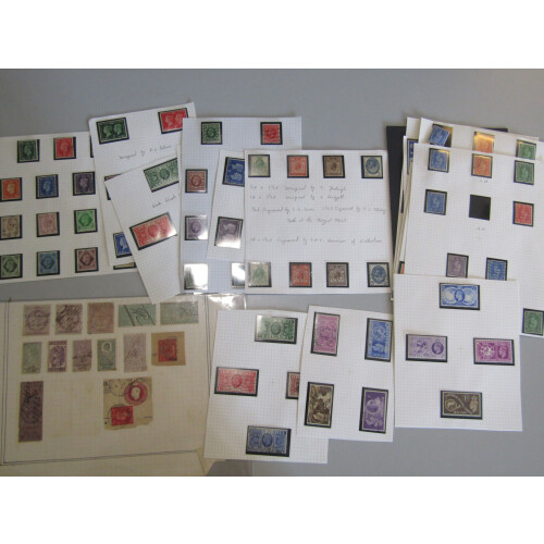 Jumbled accumulation - BOXFILE with all periods, mint & used on stockcards, leaves, envelopes, loose better noted QV surface printed 3d rose plate numbers (5-11, 14, 16-18, 20), 4d vermilion plates range (7-13), 2½d rosy-mauve plates (3-12, 14-16), 1841 2d blue varying margins, Wildings Edward set U/M, 1900 1s green mint, 9d bistre wmk emblems used, 9d straw pl.4 (wmk spray), 1974 Festival of stamps Air Mail Mercury reproduction in magenta label in imperf sheet of 100 and sheet of 90 (faults), 1841 1d red-brown mint large part o.g (2 margins Cat £600), 1918 Bradbury 2/6 chocolate-brown mint (Cat £325), 1d plates on cards, postage dues, 1887 complete basic defin set to both 1s mint or U/M (high cat value), etc, useful lot, 100s.