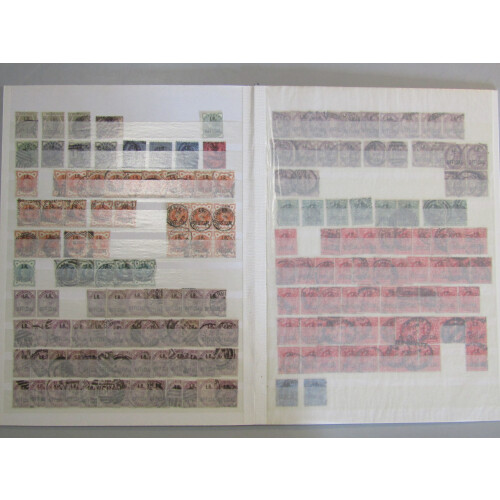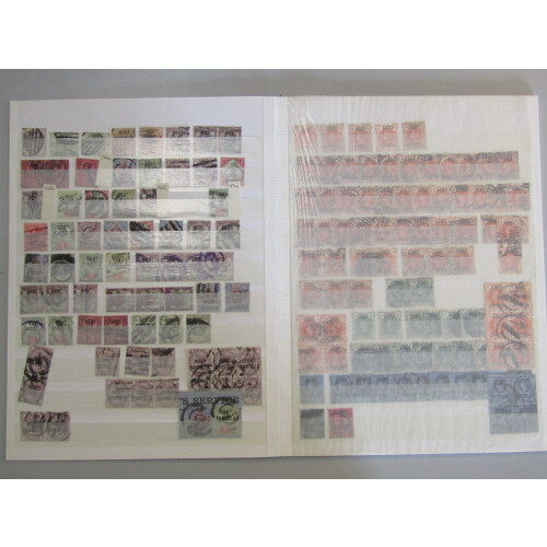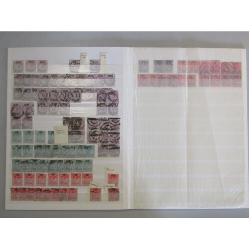 OFFICIALS: Duplicated, mainly used ranges in a stockbook with useful noted. Comprises: Office of Works (5 different incl. Ed. VII 2d), Board of Education(3 diff), Admiralty(36, with vals to 3d), Gvt. Parcels (71, incl vals to 1/-), Army (210) & I.R. (179). STC £7,100+ by vendor. Ovpts. cannot be guaranteed and some mixed condition but chiefly sound. Good lot