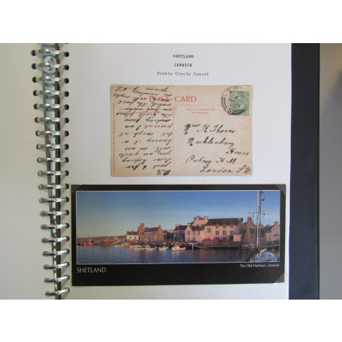 Shetland Isles: Lerwick, small collection of modern covers and a few QV incl 1841 1d red-brown 223 cancel, 1864 1d red pl. 109 with 223 cancel, 1886/7 two 1d lilacs on paper and 1887 ½d each tied LERWICK 223 CDS. Two Fair Isle modern pmks etc, intr little lot.
