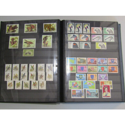 Large collection of mint and unmounted mint in stockbooks and album with many sets and thematics from around the world, mainly more modern material including Br. C/Wealth, Europe, Foreign, extra collections incl Poland special printed album, S. Africa and homelands (better cylinder blocks in sets), Channel Islands, Europa sheetlets, large stockbook of Birds thematics, much useful throughout with high cat value overall, ideal to split down for resale, 1000s.