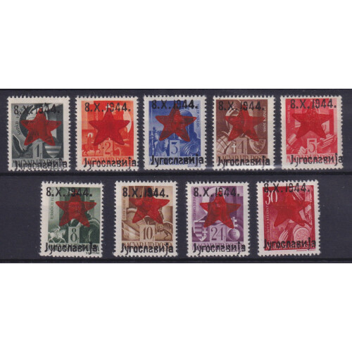 1944 (20 Oct) Sent Provisional issue to commemorate the liberation of the city, overprinted in black with red star on Hungarian diff nine values mint SG R63/69, R71/2. Scarce. (9).