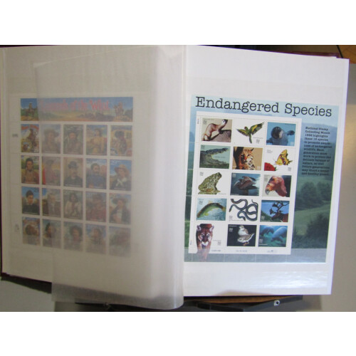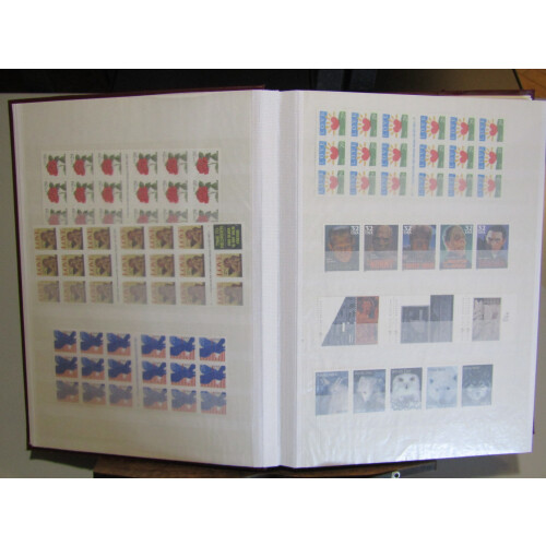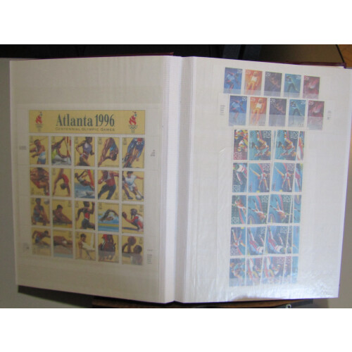1993-1995 Unmounted mint stock arranged in 64 sided stockbook with useful face and catalogue value noted sheetlets of 20 with Legends of the west, Endangered Species, Atlanta 1996, self-adhesive panes, American Art, Legends of Hollywood, Baseball, etc. Face value stated as $300.