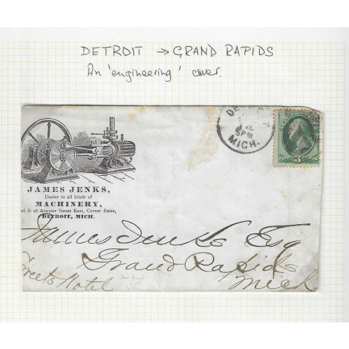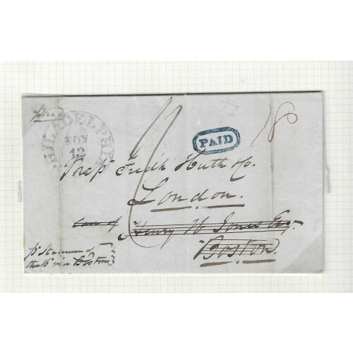 Postal History 19th century range of covers and cards with many attractive examples incl Sunday School Teacher monthly magazine advert envelope with 3c rose to Maine, 1842 Philadelphia blue cancel and PAID boxed h/s to Boston with address redirected to London sent per steamer of the 16th to Boston (Paid 18c), James Jenks illus advert env, 1899 Philadelphia RD regd cvr, 1866 Lansing, 1886 Colebrook River, 1888 Rockland, 1928 Regd letter 'Found in ordinary Mail', 1906 Boston FB cancel and Station A both to India (5 from the same correspondence), etc (23).