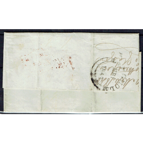 1848 Unstamped Entire Letter Glasgow to Langholme with red chargemark and two red PAID or GLASGOW cds's in red on obverse, arrival backstamp in black.