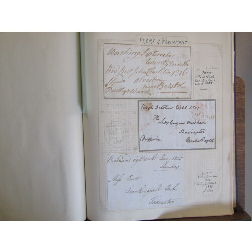 FREE FRONTS: Collection in two binders with a useful early range of parliamentary mail sent FREE incl 1785 E.L. FREE in red circle along with bishop mark 3/FE in black, 1793 dated FREE treble ring to Hull, 1808 onwards Crowned FREE dated cancel in red, 1809 with Southampton mileage mark, 1813 with Bright on dated arc, 1816 Edinburgh d/s in red, 1818 Bridgnorth mileage mark, dual morning and evening duty Grantham to London, 1828 Cheltenham Penny Post, approx 125.