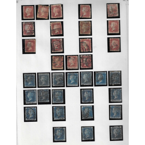 Line Engraved collection on large album pages incl 1841 1d red-brown imperf (few MX cancels, 56), 1858 2d blue plates (19), 1854-58 1d star (22 + 2 pairs), 2d blue (7), 164 1d plates etc, mixed but good qty and cat value.