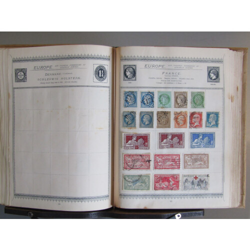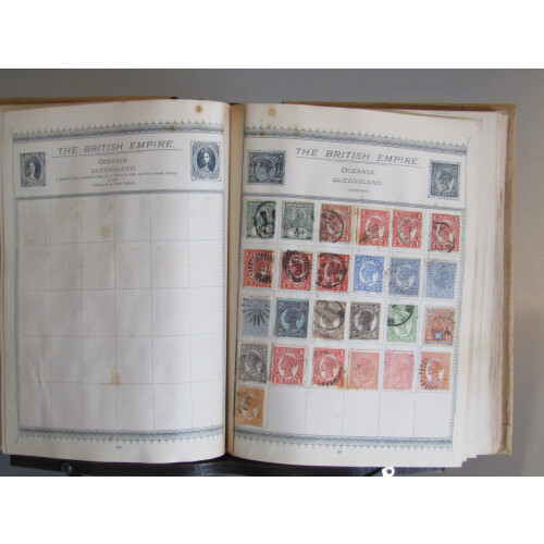 TWO OLD-TIME world collections in Strand album, and The World by Hinton similar sized album includes early to middle mainly used ranges incl Br. Empire, USA, European, France, Siam, Australian states, Canada, Papua, GB, Hong Kong etc, 100s.