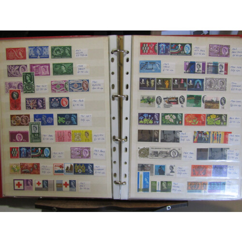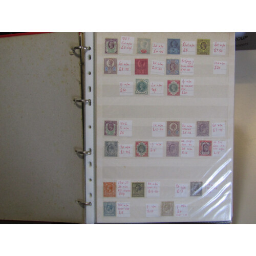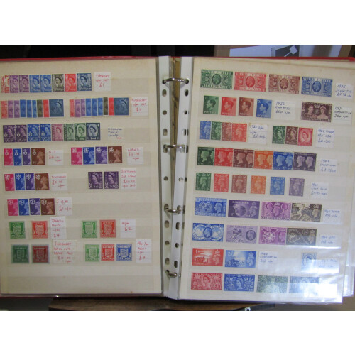 Binder with an all period mint collection from QV Jubilees set 9 vals to 1/-, EdVII range 7 vals to 1/-, GV 11 vals to 1/-, all fresh looking but may require further inspection; good QE2 section with most commem sets u/m (no phos sets) incl. decimal sets to 1985 and then a large section of Channel Is. & IOM. Worth inspection (100s)