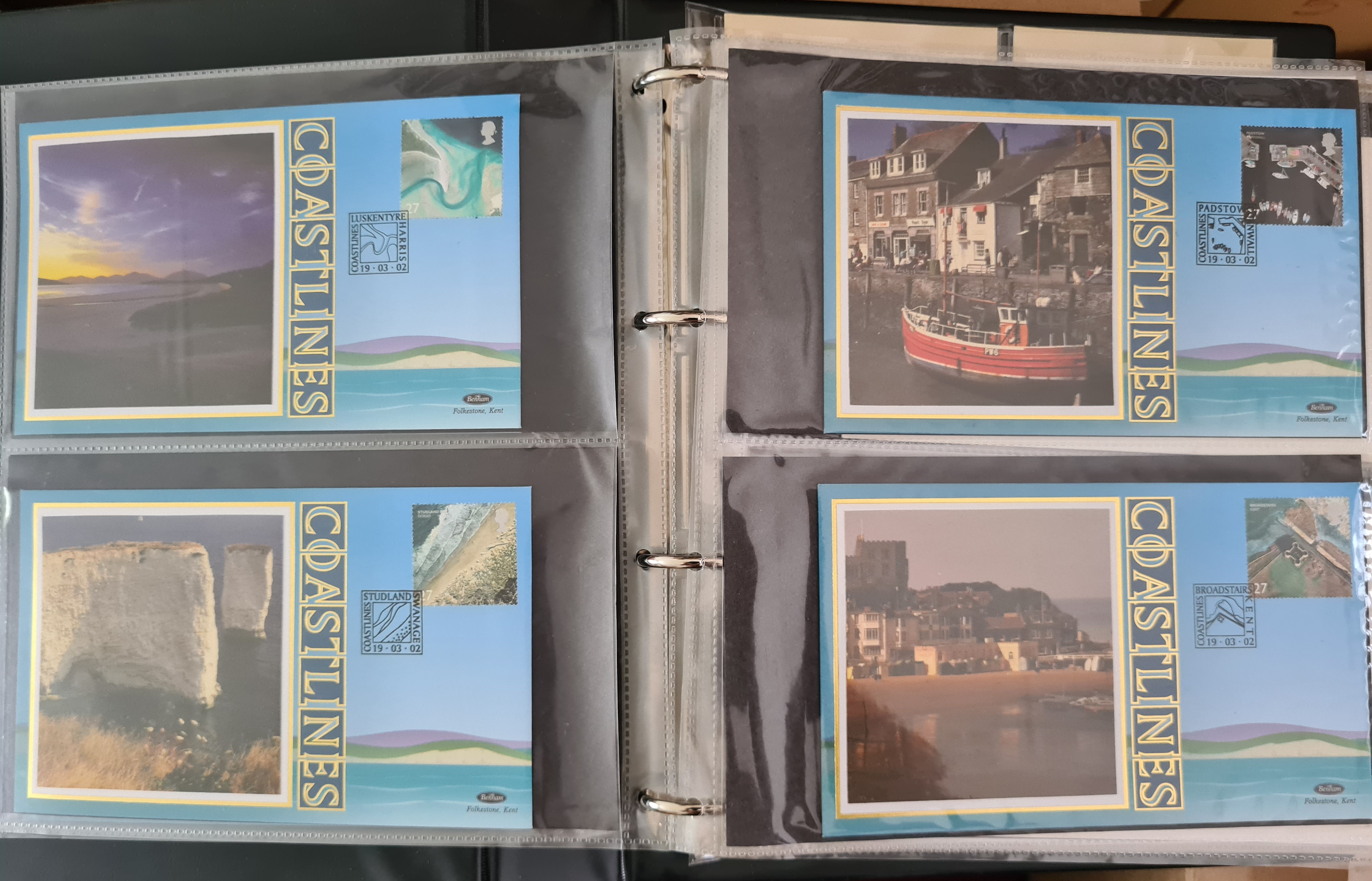 First Day Covers accumulation in a heavy box mainly in cover albums incl Benham silk Coastlines, 1977 High values incl £5 traffic light gutter pair, dozens of prestige booklet panes, NVI Smiler panes, sets galore, some with better cancels, large qty, ideal for resale.