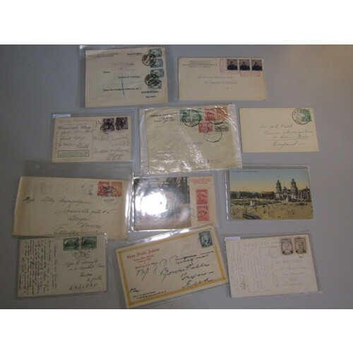 Mexico: Earlier to middle covers, cards and postcards some uprated with attractive combinations noted 1919 5c imperf, PPC of Custom House Tijuana, 1921-24 official on wrapper, 1941 Libre De Porte h/s to USA, 1929 regd official wrapper, 1943 censored to Red Cross Central POW service Italy & Geneva, 1902 PPC to Bohemia, 1923 advertising env., 1941 regd to USA with registered embossed labels on reverse in red & 1927 cvr with labels in blue, cover to USA cancelled EBANO SLP large squared h/s in violet, 1927 Radio Card used to UK, etc, intr group. (32).