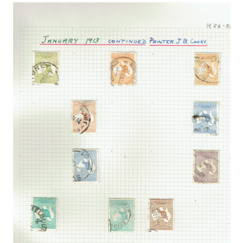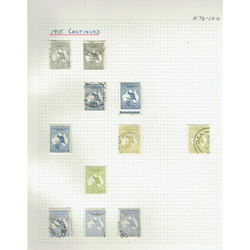 1913-1936 Small but useful collection of Roos mainly used arranged by printings incl 1913 to 2s brown, 1915 3d olive mint, 1929-30 6d, 9d, 1s mint, 1931-36 10s, £1 & £2 mint ovptd Specimen (Cat £90), useful group (c60).