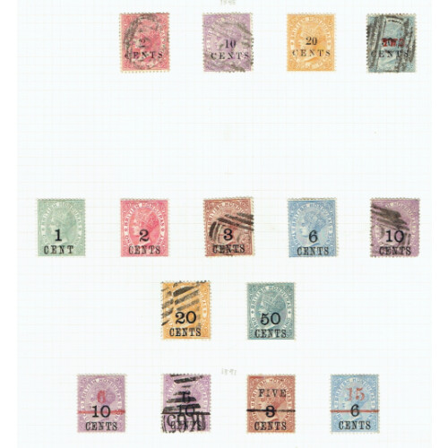 1865 - 1899 QV mixed mint and used presented on loose album pages, notable stamps are 1865 1d Blue fine used (SG2), 1872 3d Red-Brown p12½ fine used (SG7), 1888 TWO on 50c on 1c Grey used (SG35) Cat £110, nice lot worth viewing.