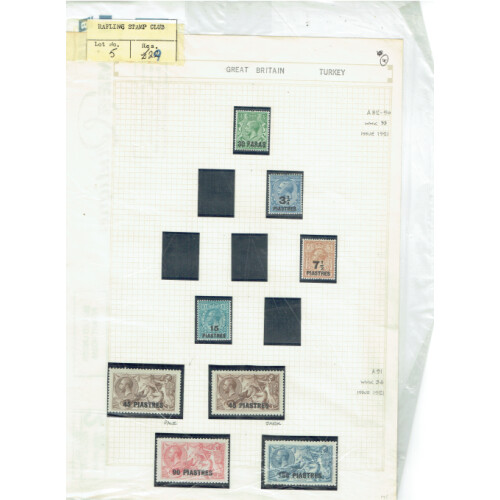 Small mint group of old auction lots including 1912 EDVII 12pi on 2/6 mint (both shades SG 33/33a Cat £130) plus one fine used (Cat £45), 1912 24pi on 5s carmine mint (Cat £80), Turkish Currency: Seahorses 45pi on 2.6 mint (2 shades, SG 48a joined figures & 48b cat £90), 90pi on 5s mint, 180pi on 10s mint (Cat £48), useful group. (13).