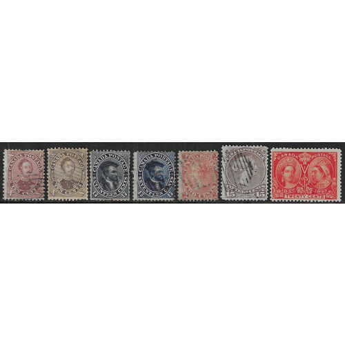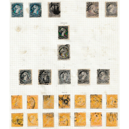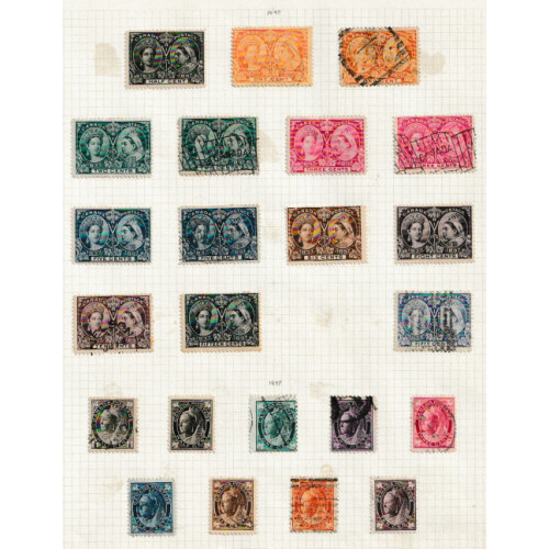 1859-1902 Collection of QV mint and used arranged on album pages by printings including 1859 1c rose (2 shades) used, 5c red (2 shades) used, 10c (2 shades cat £200) used, 12½c (3 shades) used, 17c indigo (2 shades Cat £210) used, 1864 2c rose used (Cat £225), 1868 Large Heads twenty four examples to 15c (cat £1400+), 1870-90 many duplicated shades to 10c, 1897 Jubilee 6c to 20c mainly mint, 50c used (Cat £130), 1898-1902 to 20c m & u, etc. Useful collection and enormous cat value £3200+. (Approx 125).