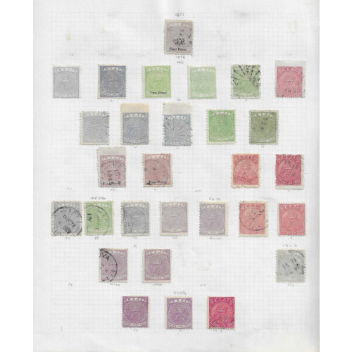 1872-1898 Collection on leaves with a comprehensive range arranged bu different printings, 1872 2c on 1d pale blue, 6c on 3d yellow-green & 12c on 6d carmine-rose used (Cat £250), 1876 Wove paper 1d blue mint (Cat £60), 6d pale rose pen cancel, Laid 1d pen cancel, 2d on 3d yellow-green f.u., 6d rose (2), 1878-99 arranged by perfs 12½ 1d blue mint (2 shades), 2d on 3d mint, 2d mint, 6d used, P.10 1d blue mint, 2d mint, 4d on 1d mint (SG 41 Cat £85), 6d rose m & u, more perf combinations m & u, 1881-99 1s pale brown diff printings mint, used (3), 1882 5s used, 1891-1892 surchs incl SG 72 mint (Cat £75), 2½d on 2d green mint (Cat £75), 5d on 4d purple mint, 5d on 6s rose mint (2 diff), excellent lot to fill those gaps. (85).