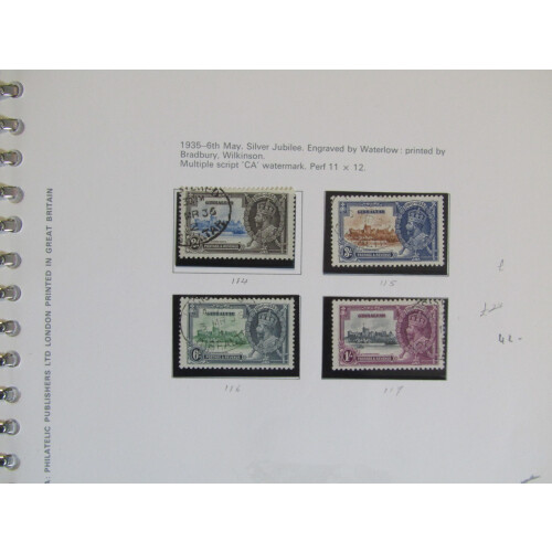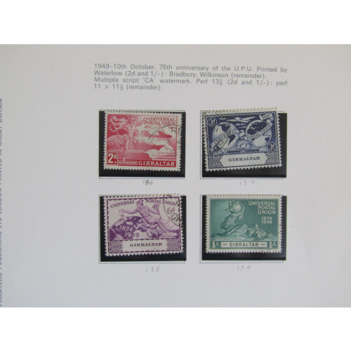 1931-1974 Gibraltar printed Album, used collection in well presented mounts. Noted 1938 set to 10s p13 and full set to £1 in 13½, 1953 full set used, overall good condition. Approx (280), With a handful of miniature sheets.