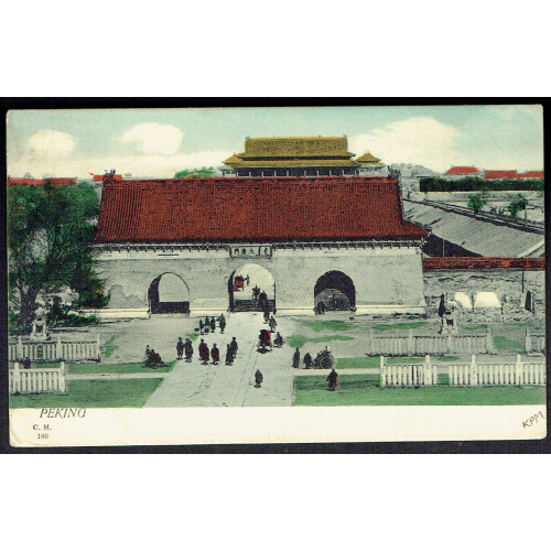 1905 China Expeditionary Force Peking picture postcard to Bombay Residency India bearing QV 3p carmine neat used FPO 1 cancel of Peking with BASE OFFICE B cds alongside, then transit TUTIOORIN and KIRKEE cds's on obverse.