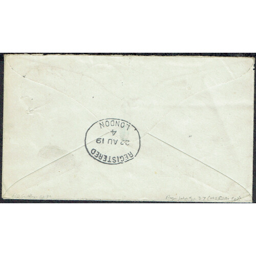 1919 (27 Jun) Registered & Censored Wilson cover bearing 1½d orange-brown strip of 3 tied APIA cds cancels with PASSED BY / CENSOR / 3 / SAMOA boxed h/s in green (lightly struck) regd etiquette No.736. Addressed to W T Wilson Birmingham UK.