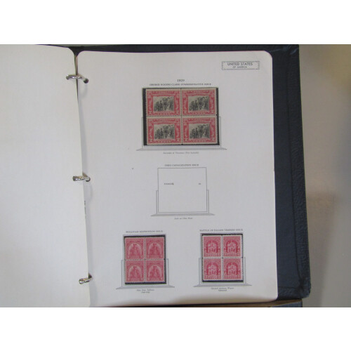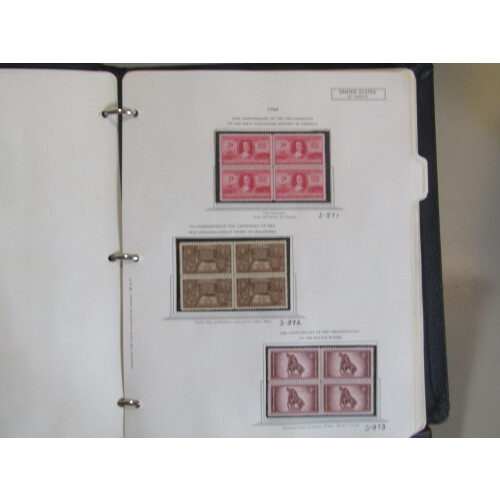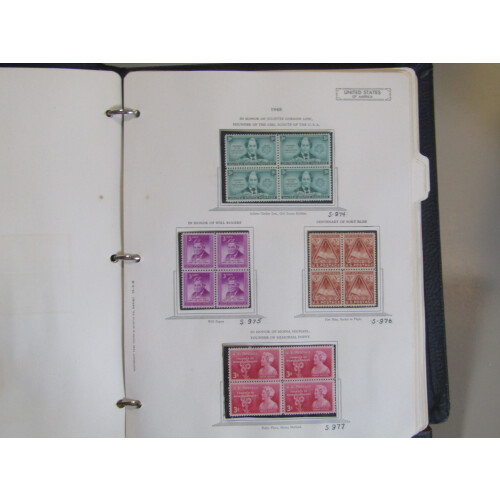 1929-1948 Mint blocks of four collection in special binder on printed leaves, many nice commem issues, 1938 Presidents to 25c etc, attr lot.