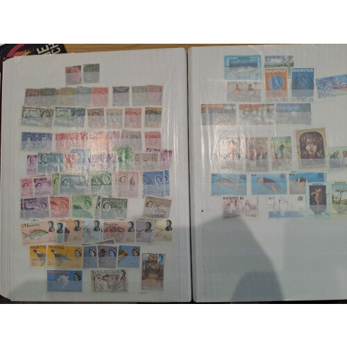 TWO LARGE 64 sided stockbooks full with mainstream country sections middle to modern periods used incl Middle East & Asia, Hong Kong 1941 Centenary set mint, Ningpo cancel on EDVII, India, Iraq, Br. Africa, French colonies etc.