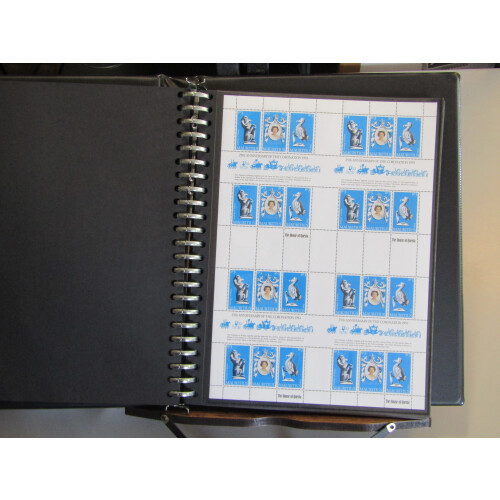 1978 Coronation uncut sheetlets collection in sheets of 4 for twenty one different countries U/M in special binder (21 A4 sheets).