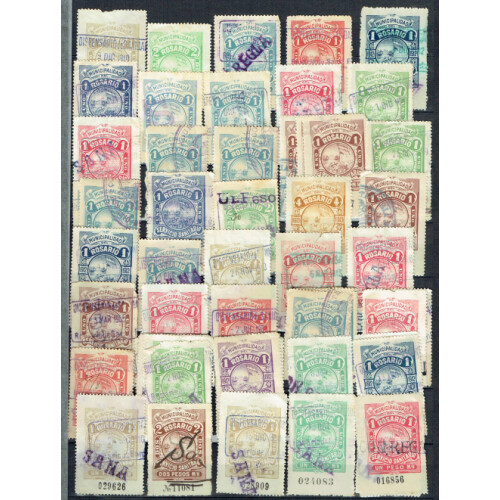 Argentina: Revenues for Rosario Prostitute Tax collection of early 20th century onwards on stockpages with approx. 120+ stamps 1pesos values in various issued colours. High retail potential.