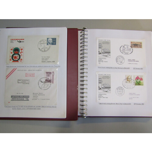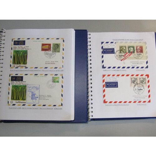 AIRMAILS: Lufthansa first and special flight covers in eleven well filled binders annotated on leaves, must be approx 1000 different covers mainly Germany to Foreign destinations, but includes some foreign departure covers, all illustrated covers with stamps cancelled special postmarks, very neat and fine covers mainly 1956-1978 and 1990-1994. includes some earlier from 1937-1958. Extensive lot hard to replicate.