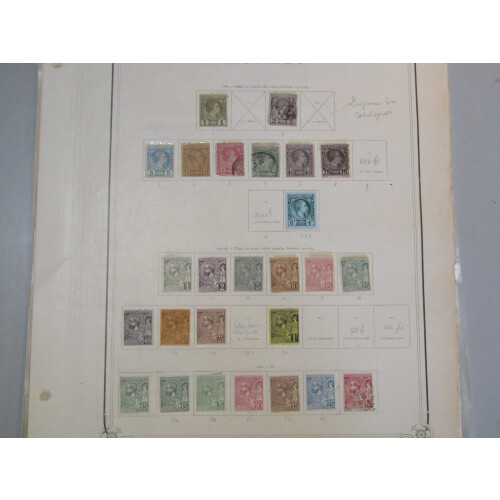 Old time extensive collection on leaves mint and used with a useful unpicked assembly from 1885 to 1950. Includes sets and better part ranges noted 1885 8 values to 75c m & u (cat £480+), 1891 17 vals to 1f m & u incl 10c brown on yellow, 15c pink & 25c green (all thinned mounted mint Cat £765), 1914 Red X CDS, 1919 War Orphans to 25c + 15c blue mint (cat £165), 1910 Mars 20 1920 ovpt on 15c + 10c, 25c + 15c, 50c + 50c all mint (cat £130), 1922 10f red m, 1924 long set values incl 3f, 5f & 10f mint (cat £80), 1933 air mint, 1948 Olympic Games set m (cat £145), 1948 Death Cent set mint (few stuck down, cat £110), 1946 Air set m (cat £310), back of the book etc, few are stuck down (not counted) otherwise mainly fine condition throughout, STC £1650+.