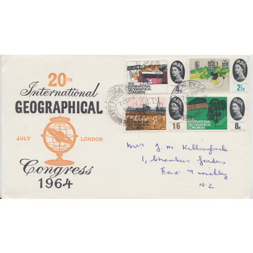 1965 International Telecoms ordinary first day cover. SG 683-684 plus 1965 typed Post Office tower first day cover. SG 679-680 Plus 1964 Geographical FDC. SG 651-654 and 1964 Shakespeare Festival FDC. SG 646-650. (4).