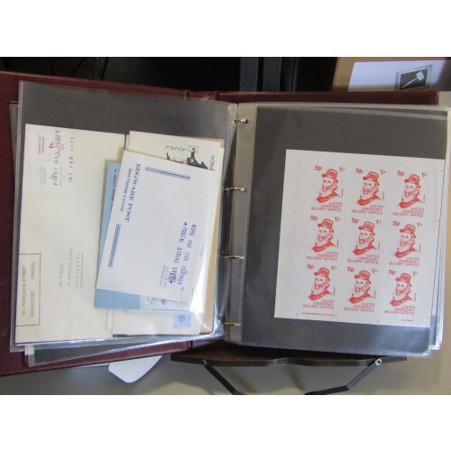 Strike Mail: Collection of covers for different services in 1971 including Exeter multi combination, Salford, Kings Arms, Kingsbridge label on printed cover, Parker Post Worcester, Lithou, Fairie FDC, SMP, Worthing, Outer Island Penzance from Scilly Is., Central Wirral Hospital Emergency, TES, Norwich, Osborne plus many more. Then labels in original sheetlets incl Manchester with one showing Manchester omitted in label, etc, 100+ covers, fascinating lot.
