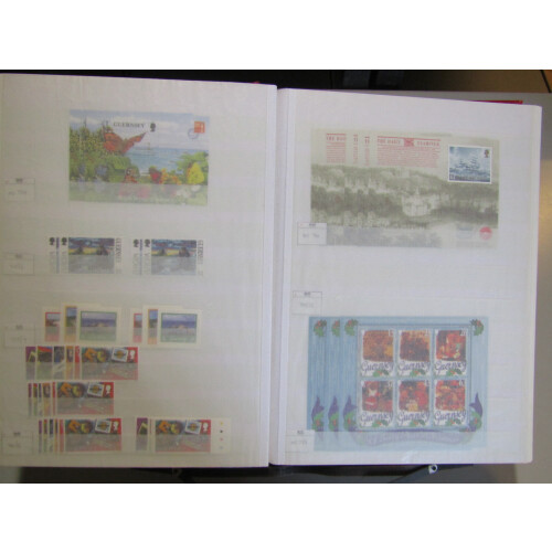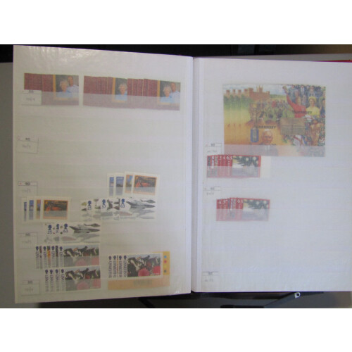 1995-2013 Unmounted mint stock arranged in 64 sided stockbook with useful face and catalogue value noted 1998 Maritime Heritage to £5 (3), 2003 £5 (3), 2006 Queen 80th Birthday £10 pair and 2 singles (Cat £22 each), many miniature sheets, also second stockbook for 1969-1994, face value stated as approx £1000.