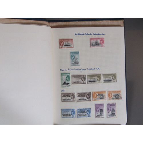 British Commonwealth - Old time springback album with mainly GV/early QEII collection including Falkland Is & Deps incl 1954 Ships to 2/6 mint, S. Georgia to 2/6 mint, Fiji, Gambia, Gibraltar from QV, Gilbert & Ellice Is., odd better.