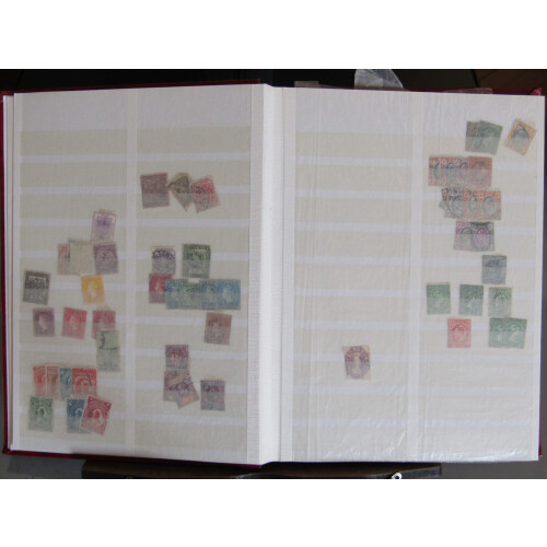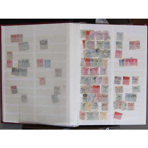 British Commonwealth - Stockbook with jumbled QV-GVI ranges mint and used including Rhodesia, Barbados, Hong Kong QV many values to 96c grey-brown, 5c ultr mint (creased), 5c on 19c lilac, St Vincent QV, Niger Coast, Br. Levant 5pi on 1s used, 45pi on 2/6, Australia states to 5s & £1, Natal incl QV 5s rose, £1 revenue, New Zealand QV defins, Cape of Good Hope incl Military Telegraphs, 100s.